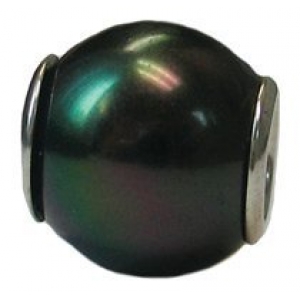 Sterling Silver Colored Stone & Crystal "Black Shell Pearl" Zable Bead