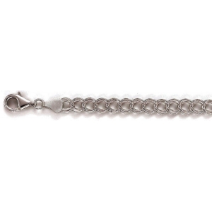 This Sterling Silver Charm Bracelet is 6.5 mm thick and comes in both 7 and 8 Inches. The gram weights are: 7 Inches- 7.1 Grams 8 Inches- 7.7 Grams