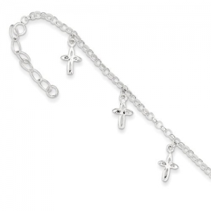 Sterling Silver 9" Cross Charm Anklet