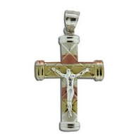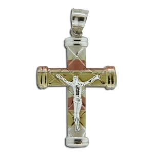 Sterling Silver Tri-color Crucifix Cross Pendant