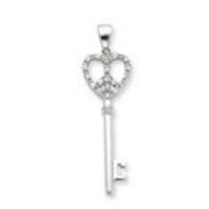 Sterling Silver CZ Heart Key Pendant