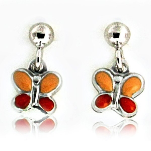 Sterling Silver Enamel "Butterfly" Dangle Post Earrings