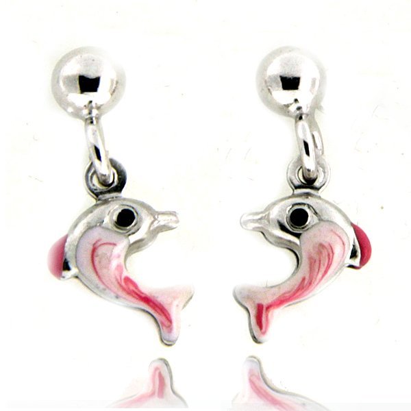 Sterling Silver Enamel " Dolphin " Dangle Post Earrings