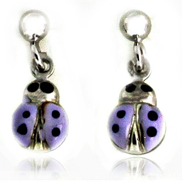 Sterling Silver Enamel " Purple Ladybug " Dangle Post Earrings
