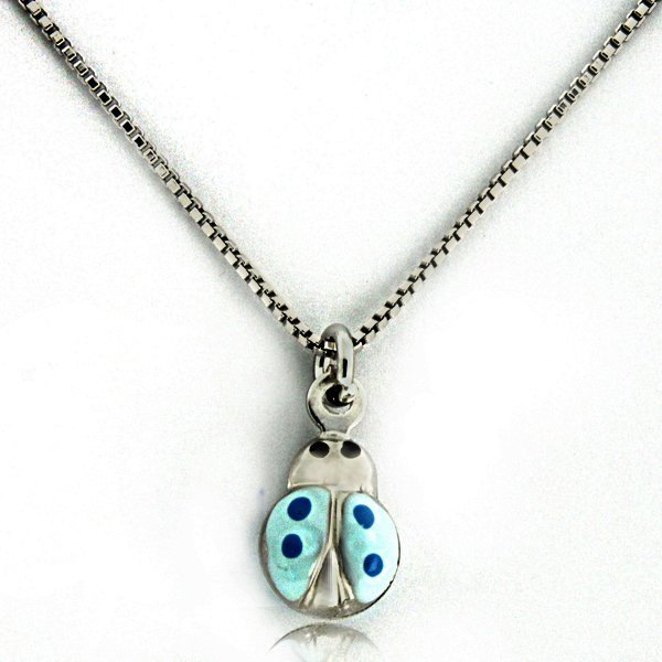 Sterling Silver " Blue Enamel Ladybug " Necklace with Enamel