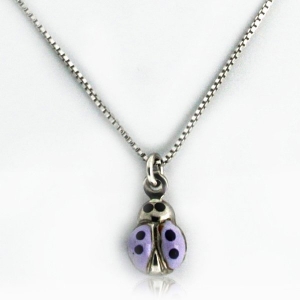 Sterling Silver " Purple Enamel Ladybug " Necklace