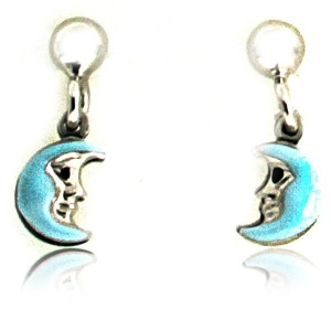 Sterling Silver Enamel " Blue Moon " Dangle Post Earrings