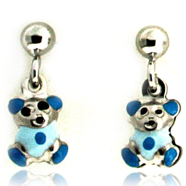Sterling Silver Enamel " Blue Teddy Bear " Dangle Post Earrings