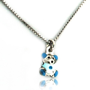 Sterling Silver " Enamel Blue Teddy Bear " Necklace
