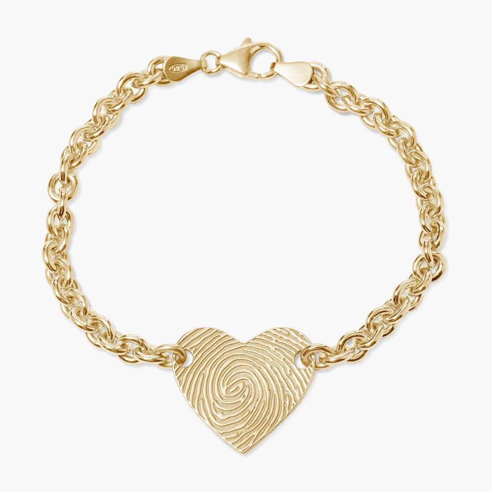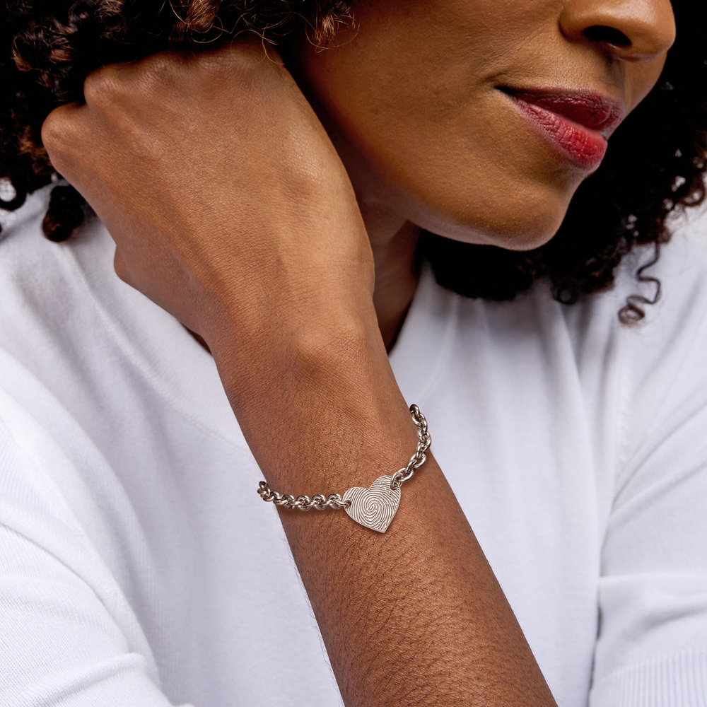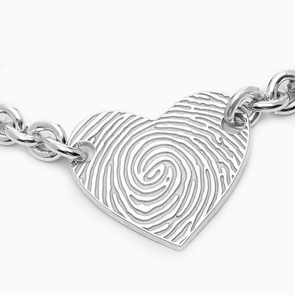 Sterling Silver Custom Fingerprint Heart Bracelet