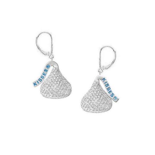 Sterling Silver Hershey's Kiss Flat Back w/ CZ Leverback Earrings