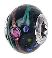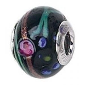 Sterling Silver Murano Glass "Black with Flowers" Zable Bead