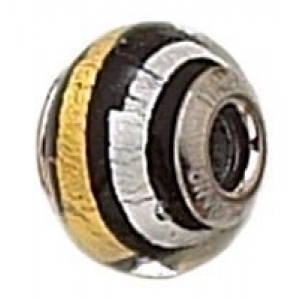 Sterling Silver Murano Glass "Black, Gold, Silver" Zable Bead
