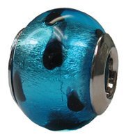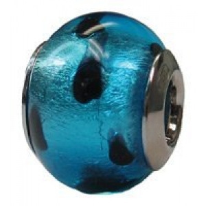 Sterling Silver Murano Glass "Blue with Black Polka Dots" Zable Bead