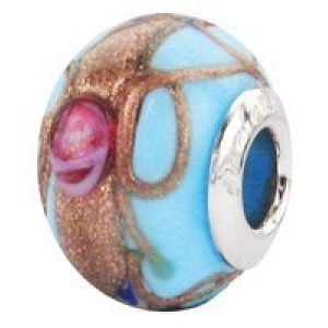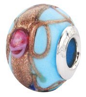 Sterling Silver Murano Glass "Blue Floral" Zable Bead