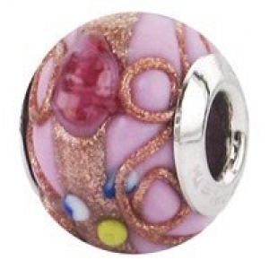 Sterling Silver Murano Glass "Pink Floral" Zable Bead