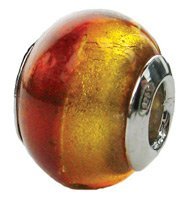 Sterling Silver Murano Glass "Gold with Amber Stripe" Zable Bead