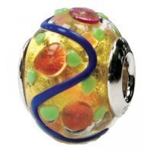 Sterling Silver Murano Glass "Gold with Blue Swirls" Zable Bead