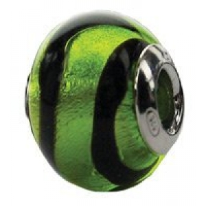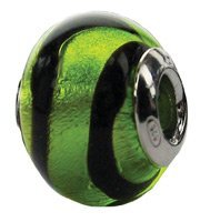 Sterling Silver Murano Glass "Green Zebra" Zable Bead