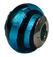 Sterling Silver Murano Glass "Blue Zebra" Zable Bead