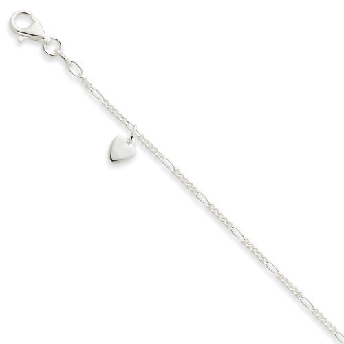 Sterling Silver Polished Dangling Hearts on Figaro Anklet