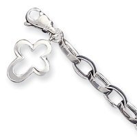 Sterling Silver Solid Polished Fancy Cross Anklet