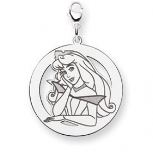 Sterling Silver Princess Aurora Lobster Clasp Round Charm