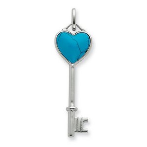 Sterling Silver Reconstructed Turquoise Key Pendant