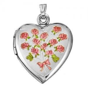 Sterling Silver "Sweetheart" Dozen Roses Heart Locket