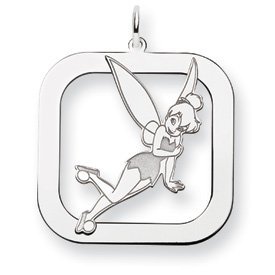 Sterling Silver Tinker Bell Two Layer Square Charm