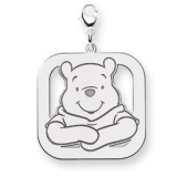 Sterling Silver Winnie the Pooh Large Lobster Clasp Square Charm