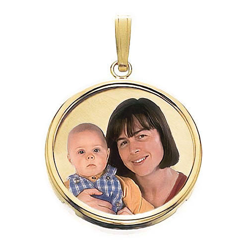 Small Round w/ Bezel Frame & Protective Crystal Photo Pendant