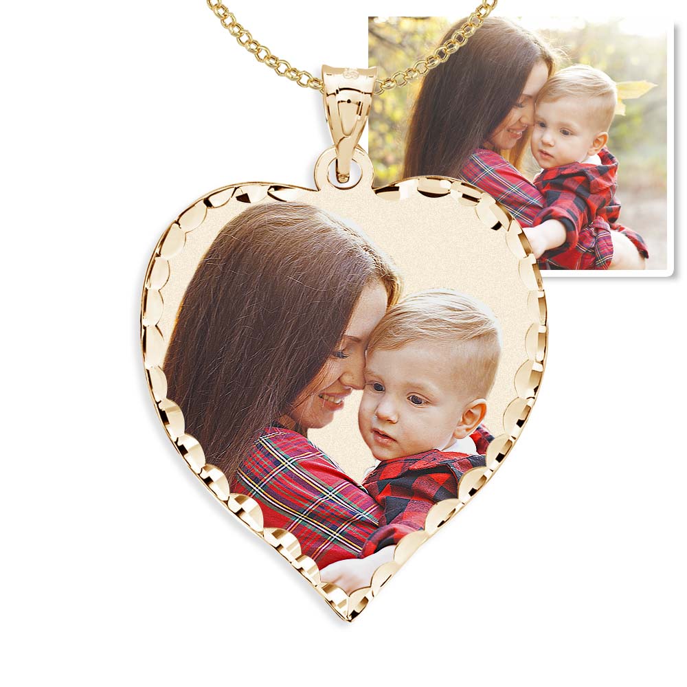 A: Color Laser: Your photo in full color permanently lasered onto your charm. This process being the most detailed. We´ve had customers say, "My pendant actually looks better than the photo." A protective jewelry enamel is added to every "color laser" pendant to ensure that every day your charm will look as beautiful as the day you took it out of the box.