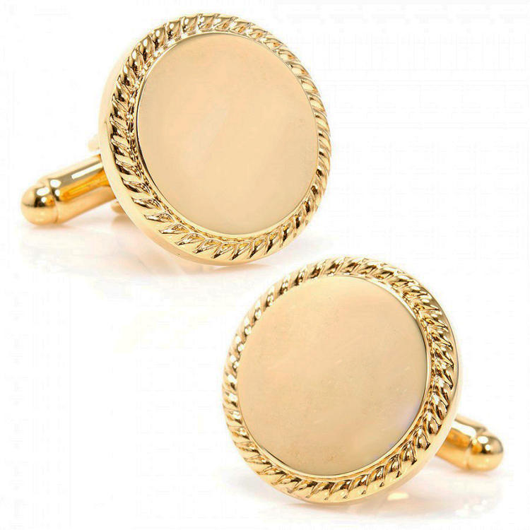 *Gold Plated 24K Round "Rope-Frame" Engraveable Cufflinks.
