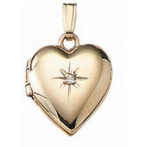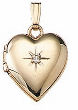 Solid 14k Yellow Gold Children's Diamond Heart Photo Locket