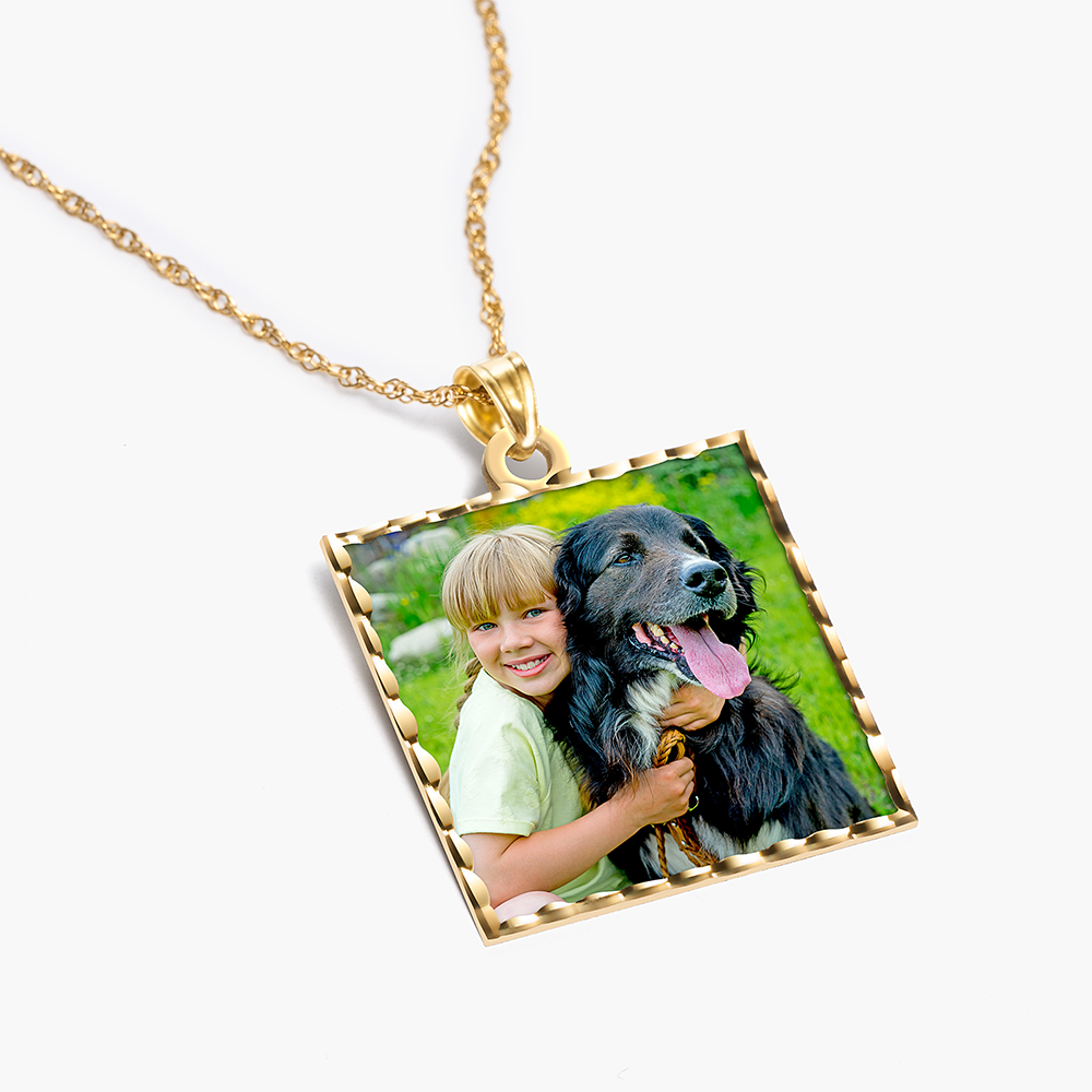 Square Pendant with Diamond Cut Edge Photo Pendant Charm