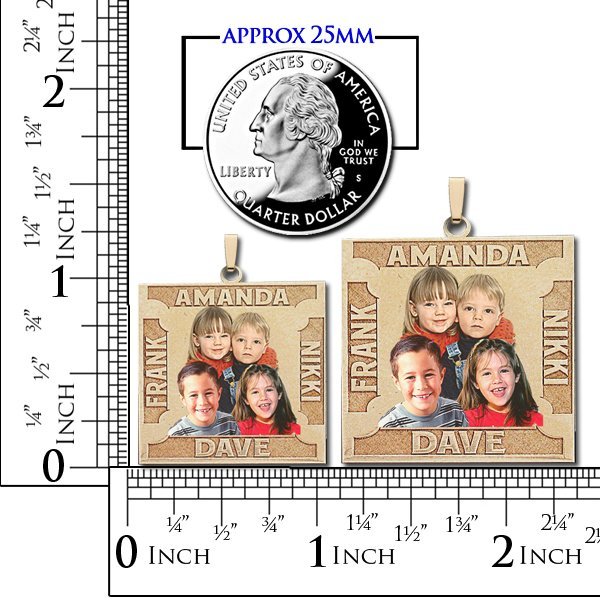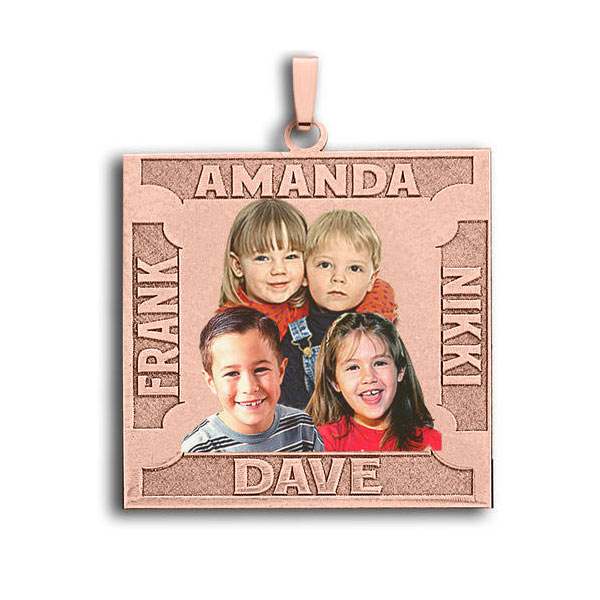 Square Photo Pendant w/ 4 Names Etched