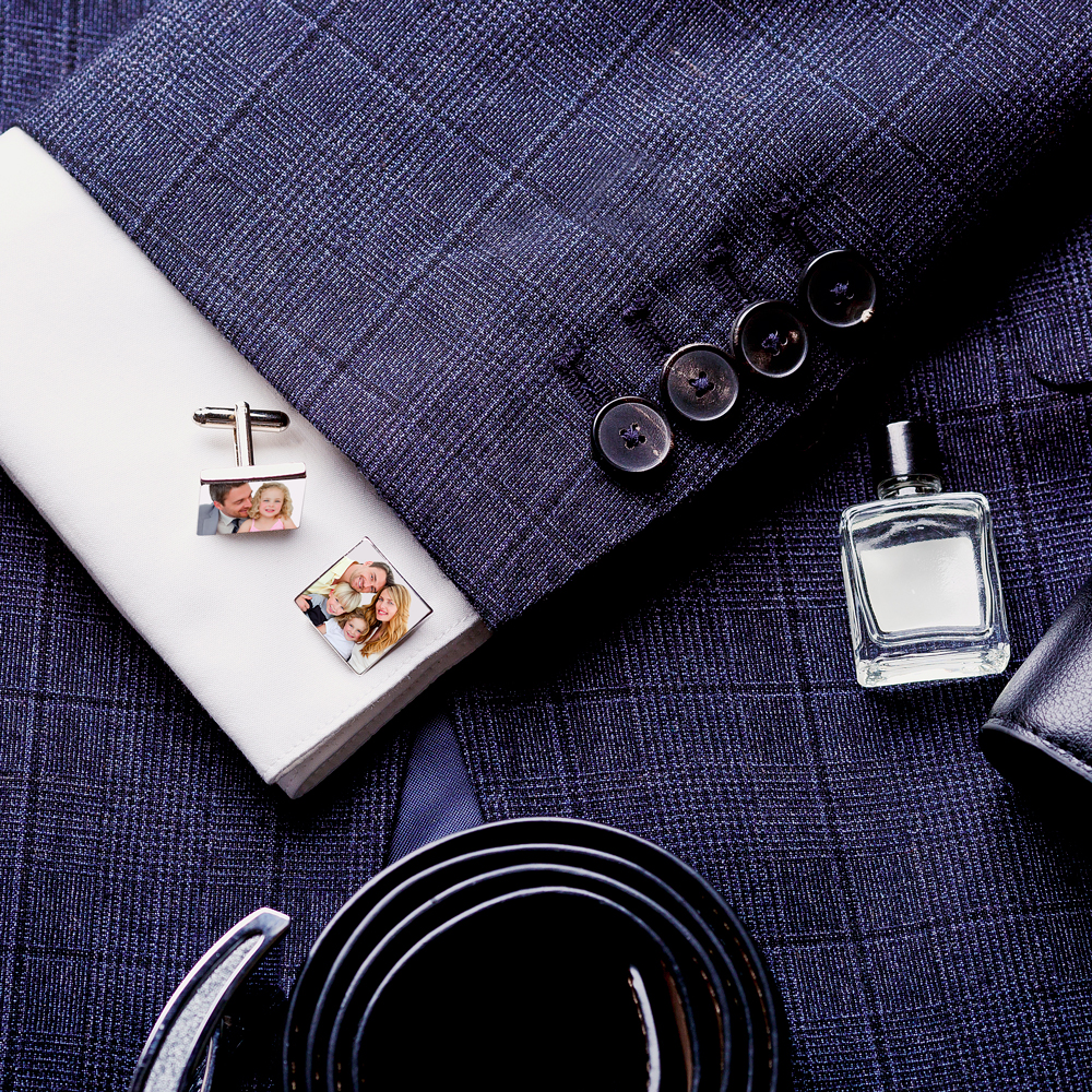 *These Cuff Links are the perfect Father's Day gift or a Bridal Party Gift *Cuff Link's are available in Stainless Steel * Each Cuff Link is approximately 3/4 Inch x 3/4 Inch * Price is Per Pair * Item is engravable with a message, monogram, And Photo * Ships in 1 Business Day