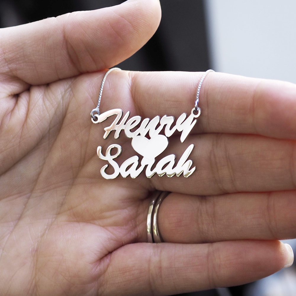 high polished script nameplate is available in Solid .925 Sterling Silver, 14k Gold