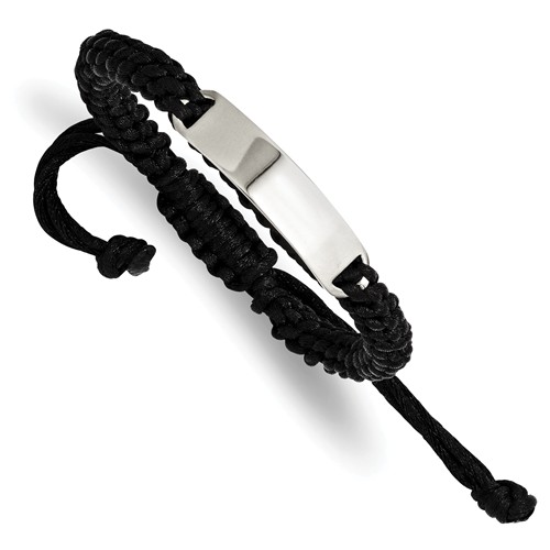 Custom Engraved Stainless Steel Men's Black Fabric ID Bracelet
