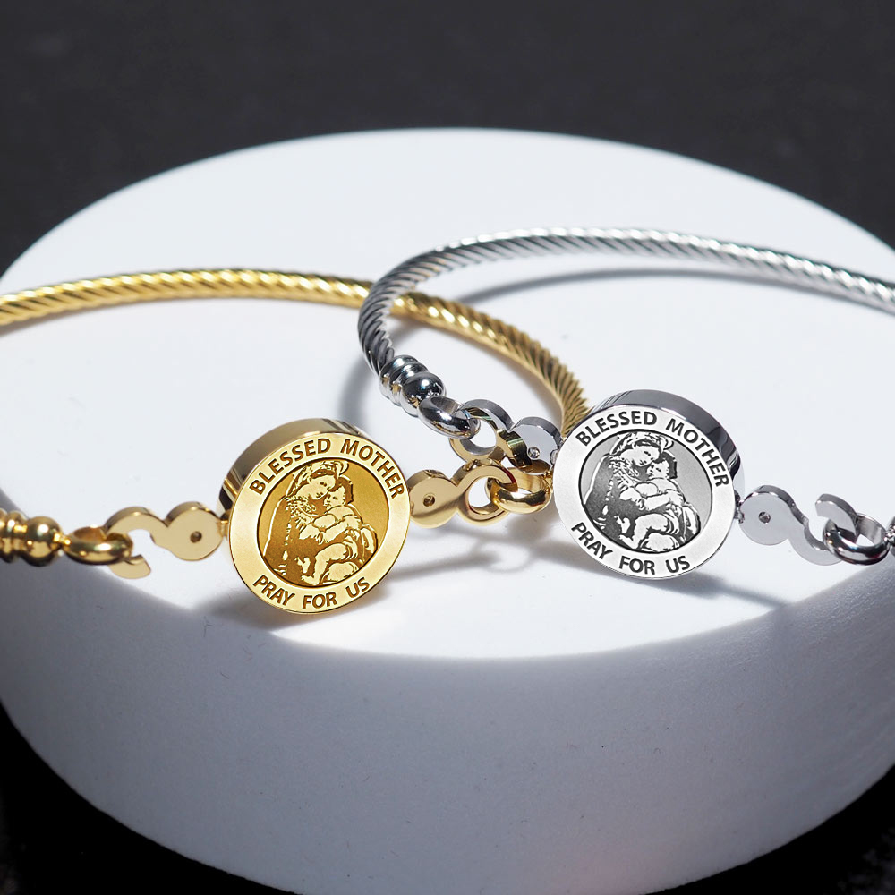 Stainless Steel Blessed Mother Virgin Mary Bangle Bracelet