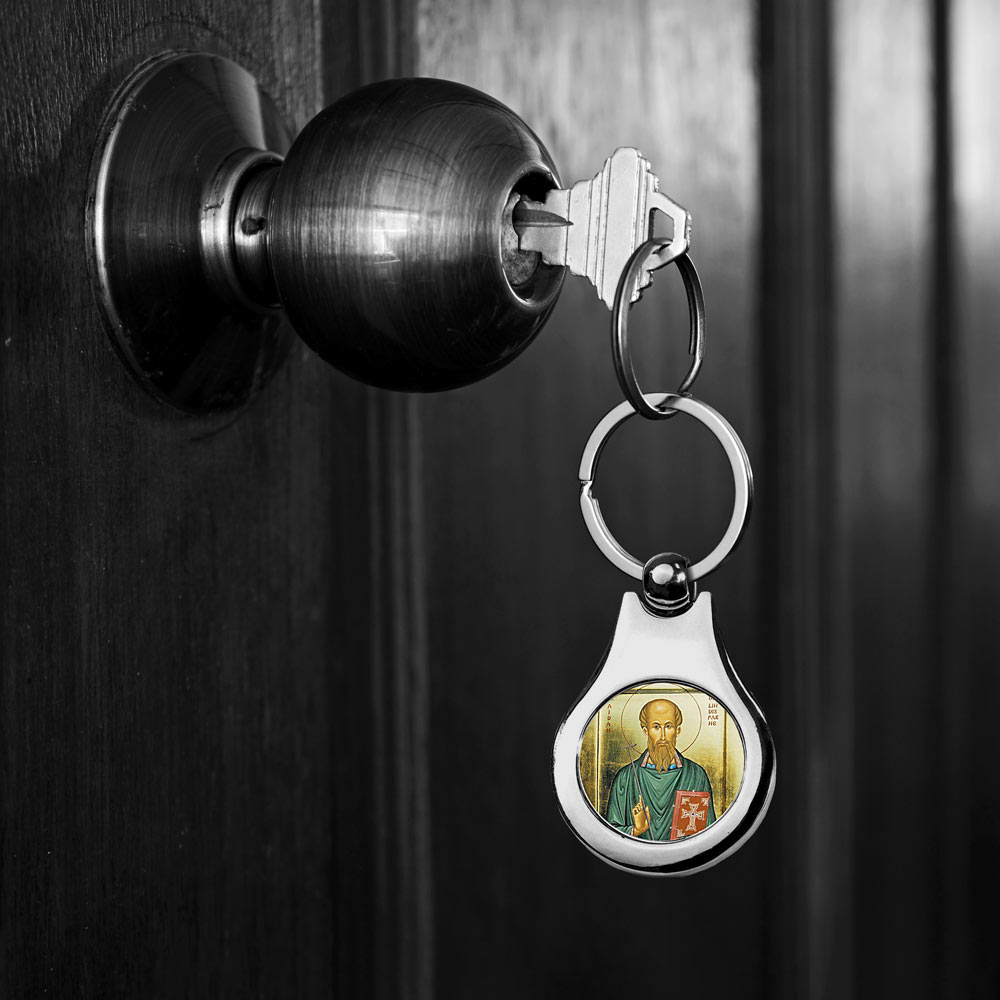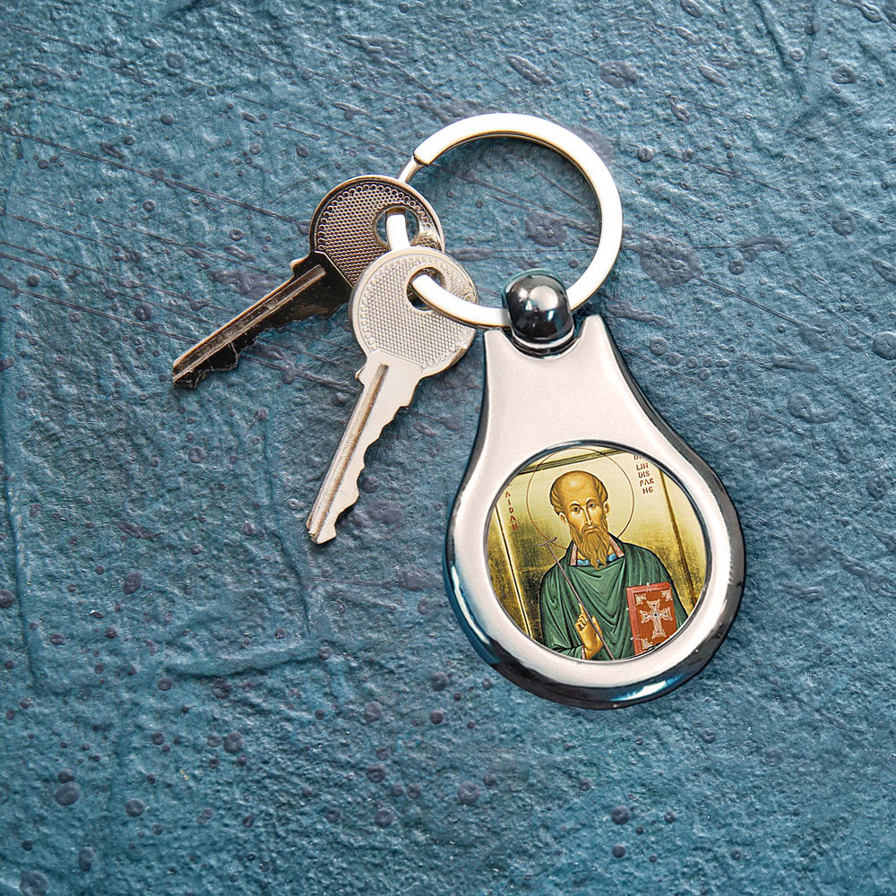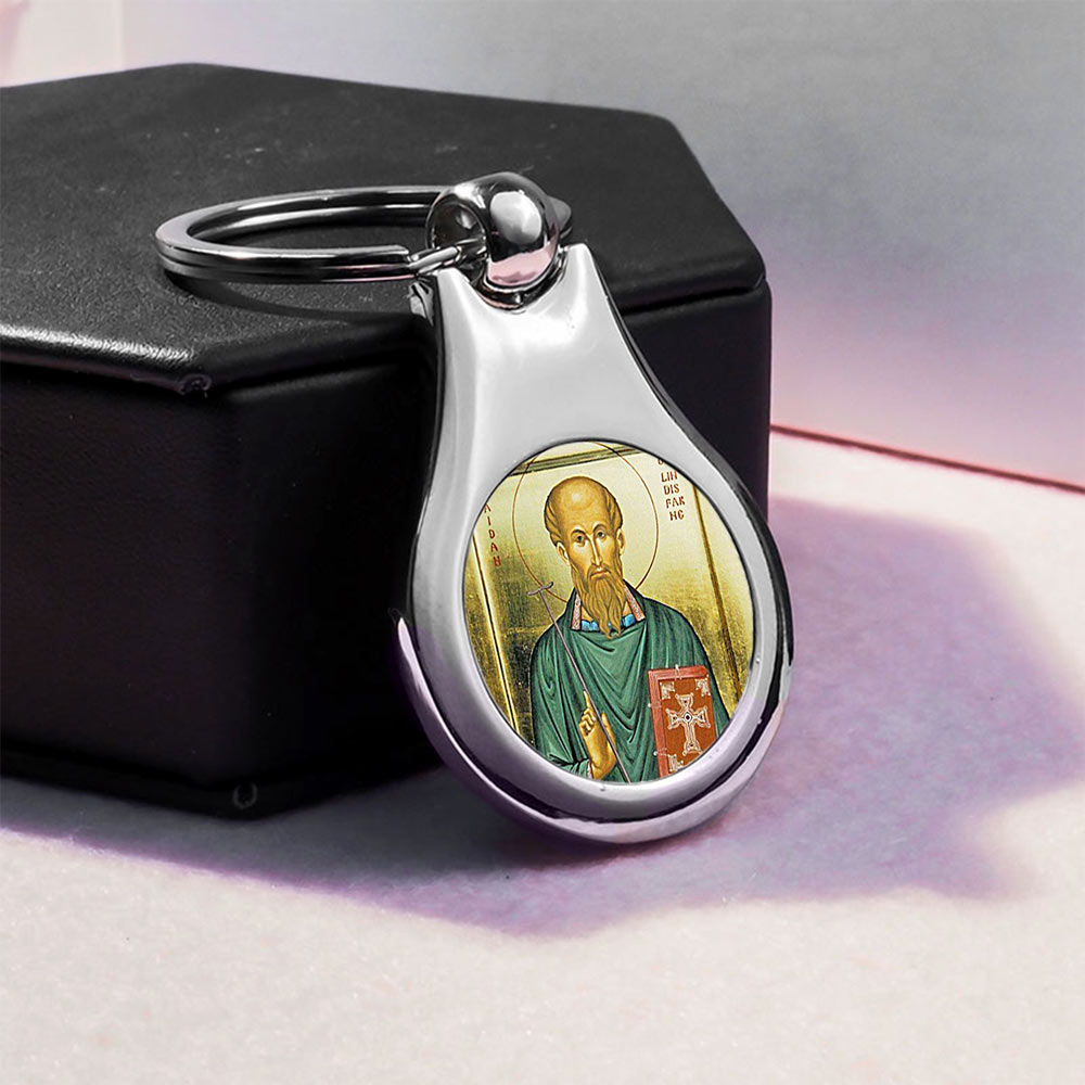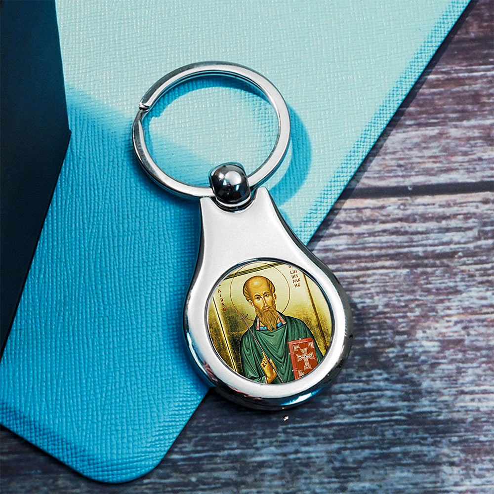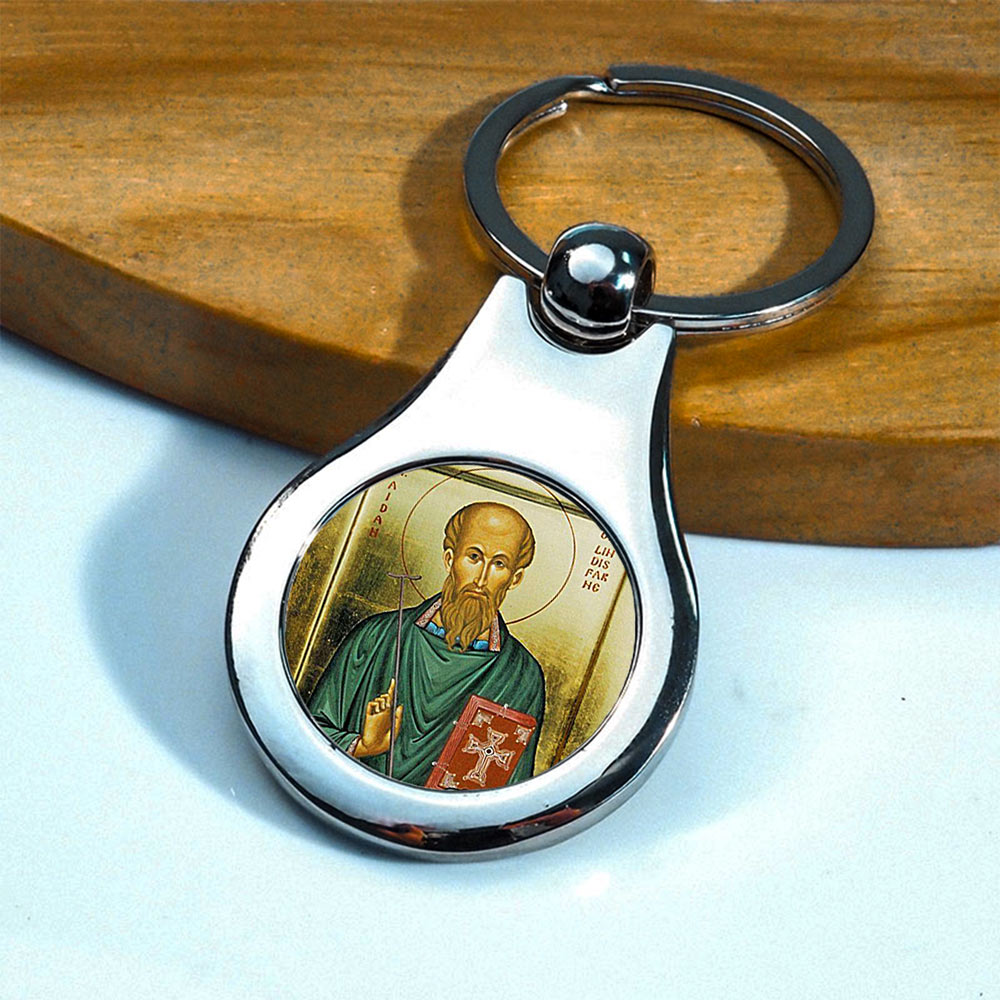 Stainless Steel Color Saint Aidan Keychain