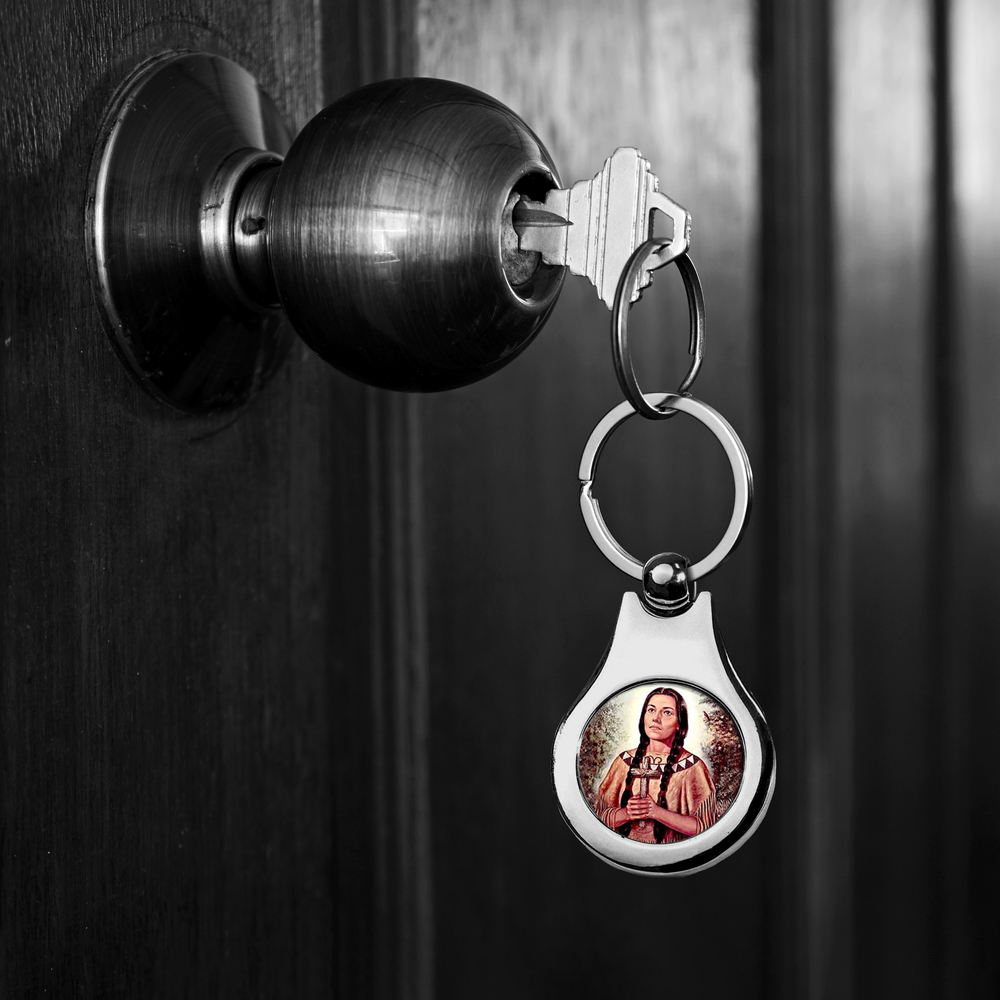 Stainless Steel Color Saint Kateri Tekakwitha Keychain