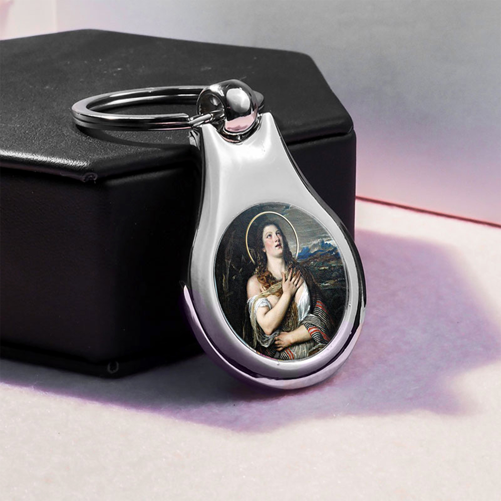 Stainless Steel Color Saint Mary Magdalene Keychain