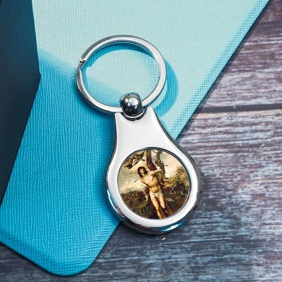 Stainless Steel Color Saint Sebastian Keychain
