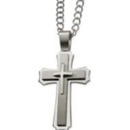 Stainless Steel Cross Pendant 24in Necklace