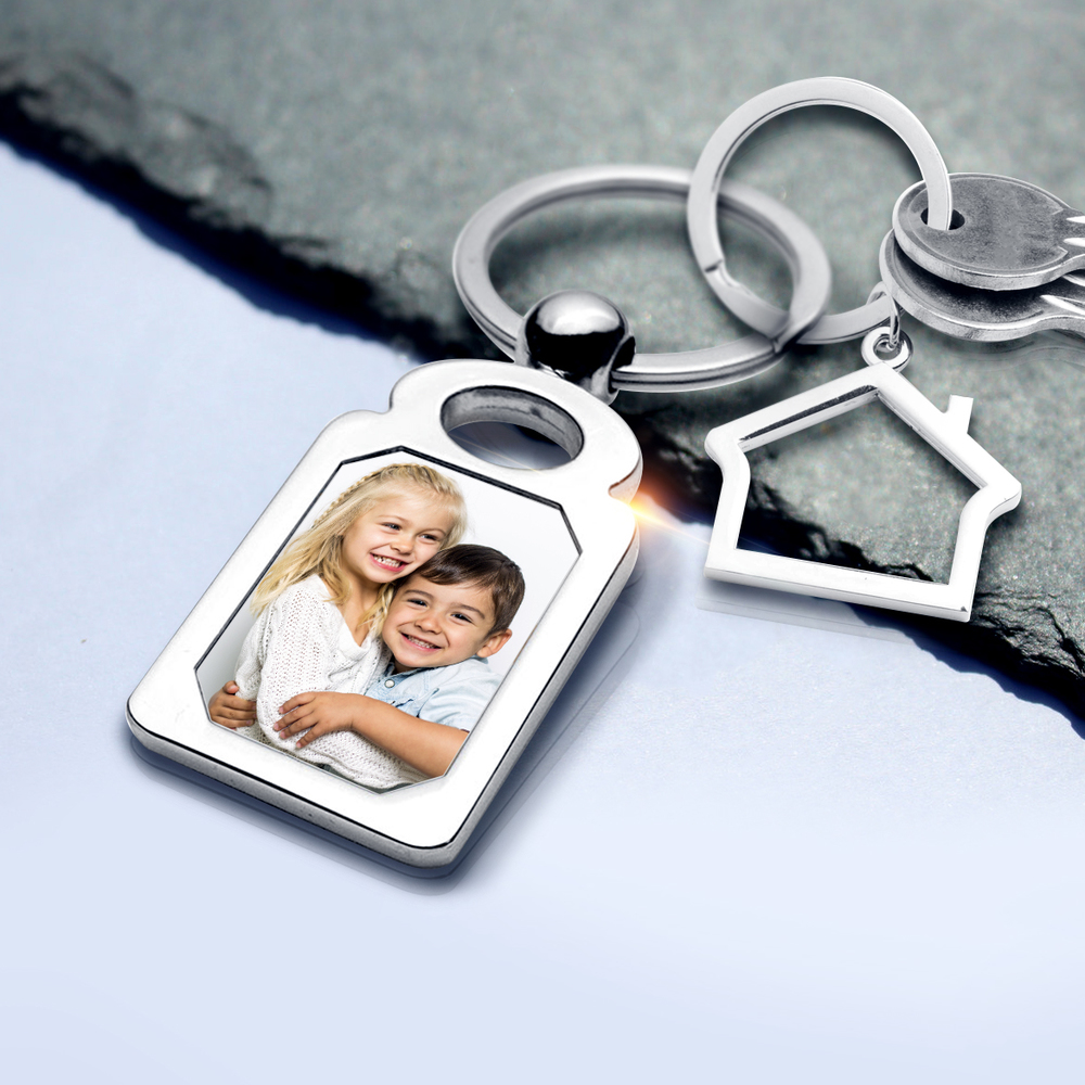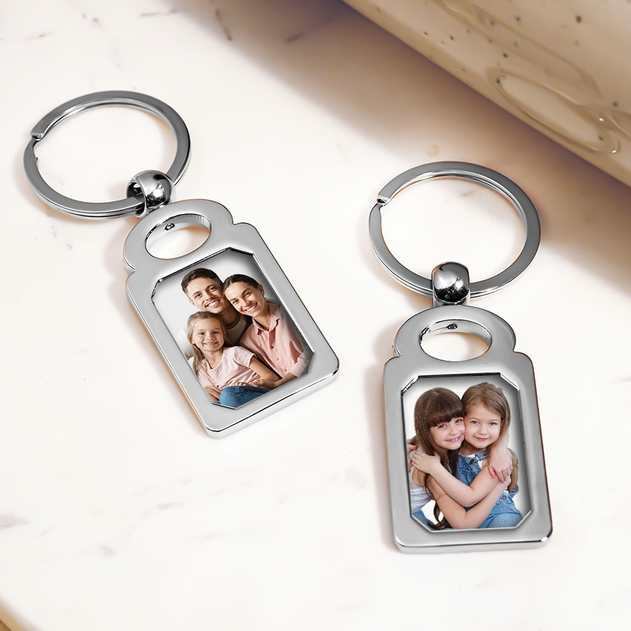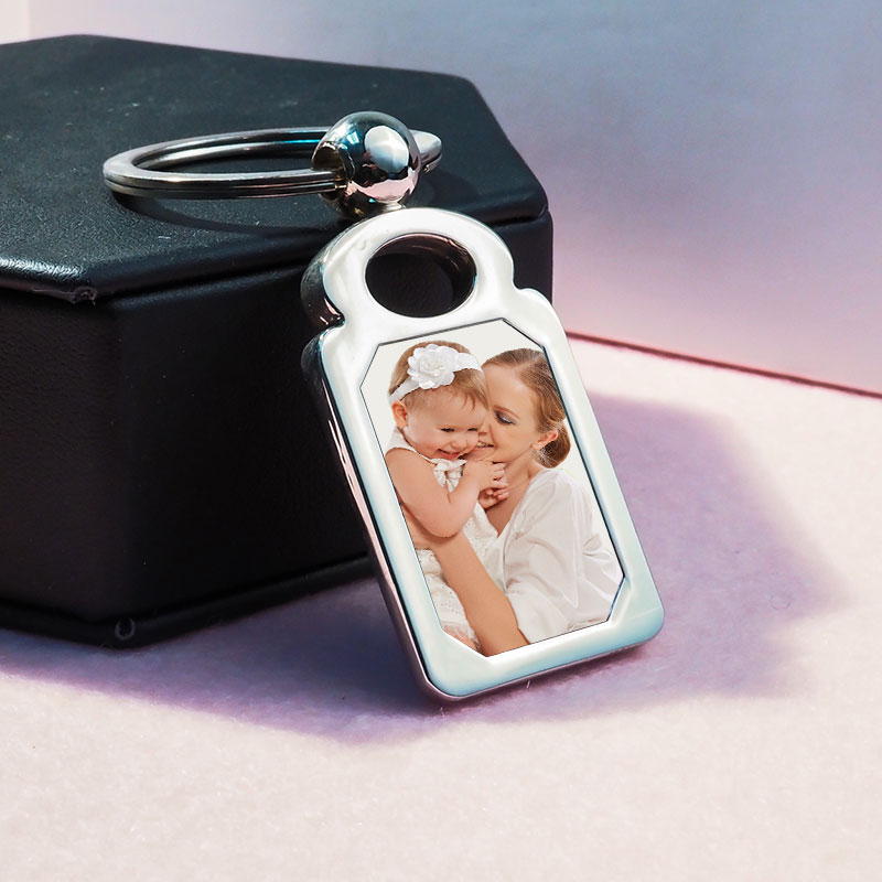 Stainless Steel Engravable Rectangle Photo Laser Keychain