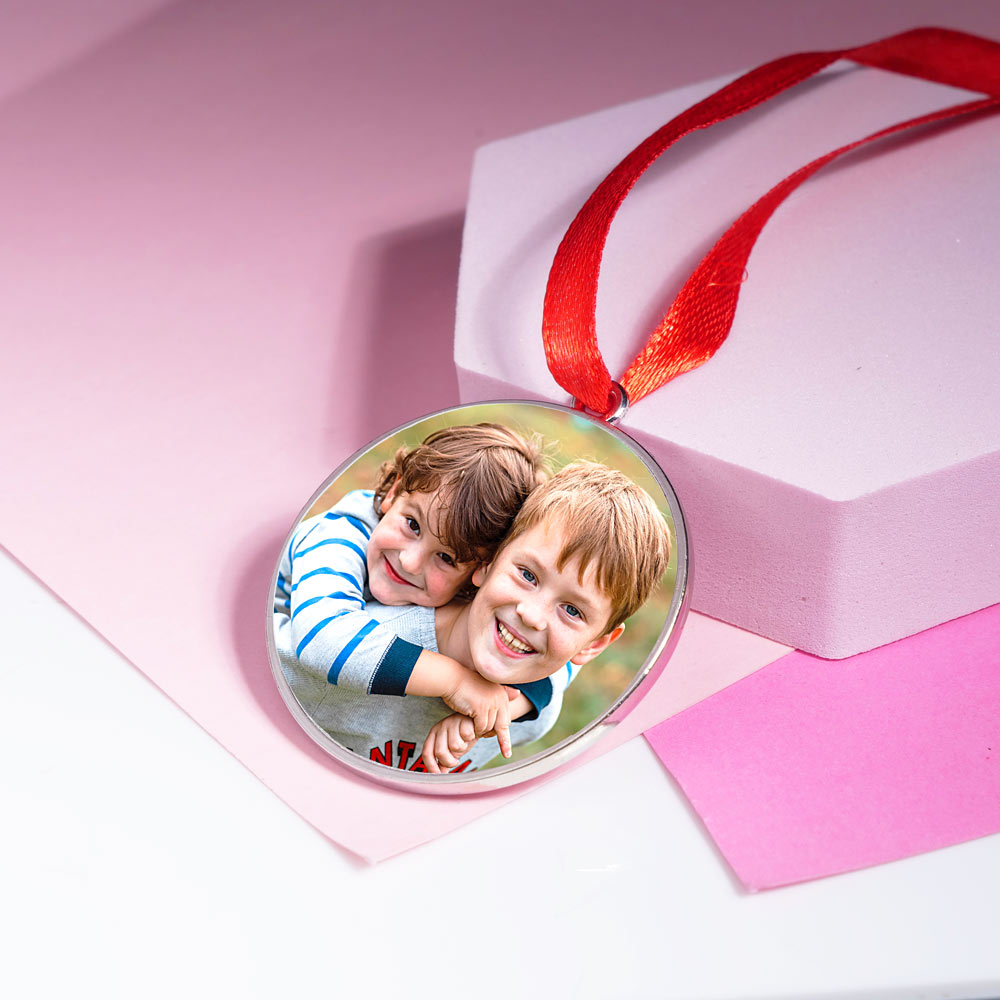 Stainless Steel Round Photo Engraved Ornament