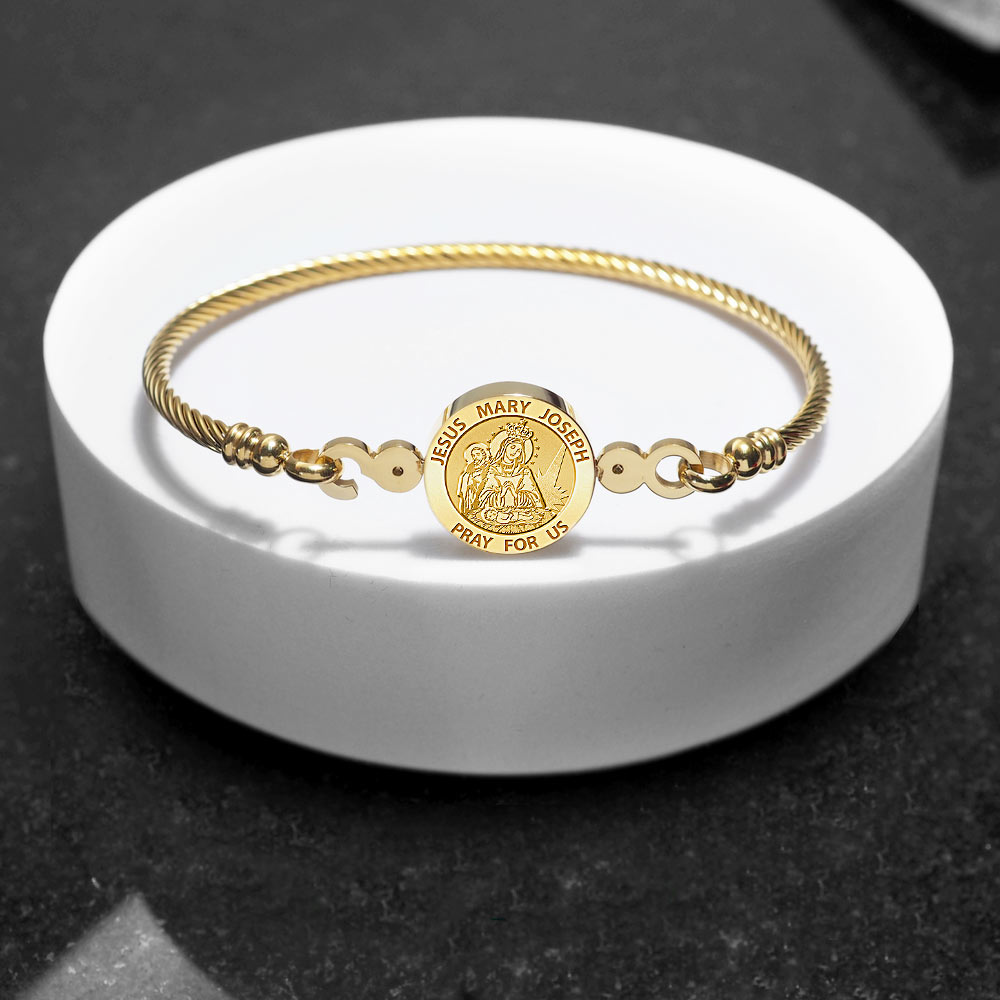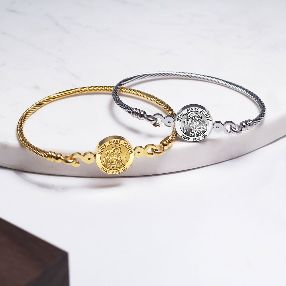Stainless Steel Jesus Mary Joseph Bangle Bracelet