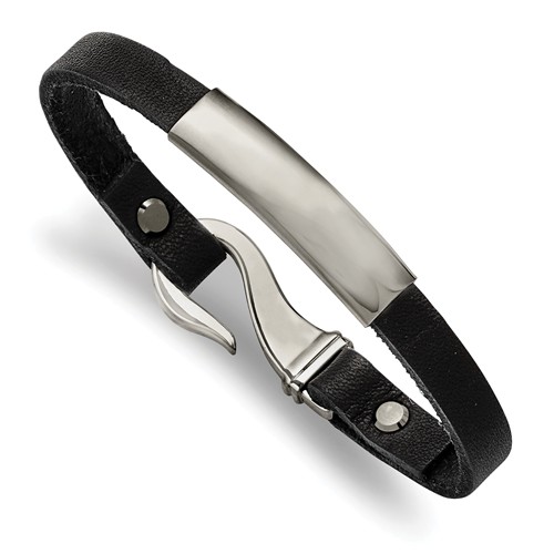 Custom Engraved Stainless Steel Men's Black Leather ID Bracelet